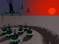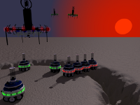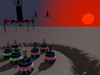 And why is all this interesting? Well, a self-assembling robotic system has the ability to autonomously (i.e., without human intervention) change its morphology on the fly! If you are thinking about the Transformers right now -- you have pretty much got the idea. But only the idea though, as the state-of-the-art robotic research is not able to deliver anything close to that, yet. In my research, I use a swarm of self-assembling robots called the foot-bots. The foot-bots can drive on the ground and dynamically attach to each other when it is advantageous to do so. However, their abilities to sense the environment are limited. They may not always be able to know when and where to attach to each other. So, I extend the swarm to include a second type of robot called the eye-bots, that can fly and sense the environment in a better way from their elevated positions. This leaves us with a heterogeneous swarm robotic system that can dynamically change its morphology on the ground (i.e., by foot-bots attaching on to each other adaptively) while being guided by some of its airborne swarm members (i.e., from the eye-bots). ![]() (a) ![]() (b) ![]() (c) An illustration of the idea discussed above. (a) A swarm including numerous eye-bots and foot-bots is deployed in an environment that contains a ditch. The foot-bots by themselves are only able to detect the ditch and stay away from falling into it. They do not have the sensors to i) determine whether it may be advantageous to cross the ditch and ii) to figure out how the collective morphology may look like that may allow them to cross the ditch. (b) An eye-bot that has a better overview of the environment (meaning it can estimate the width of the ditch and can detect the number of foot-bots close to the ditch etc.) cooperates with the foot-bots by selecting four foot-bots and assisting them to (c) form a chain-like collective morphology that can help these foot-bots to drive over the ditch without falling into it. It may sound disappointing to you -- but this is the kind of Transformers I intend to deliver. |
